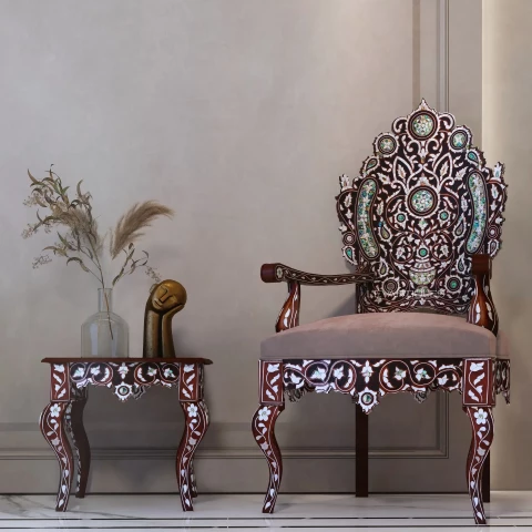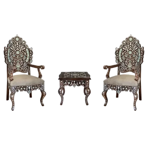 Handcrafted Luxury in Walnut & Pearl Chairs and tables