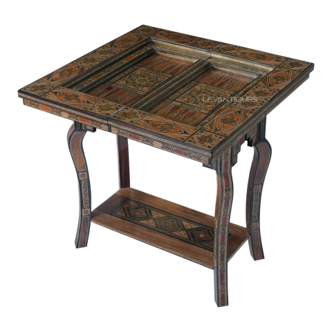 Elevate your game night with a piece of history. This exquisite folding game box is a celebration of the Levant’s most beloved pastimes. Handcrafted in the workshops of Damascus, it transforms the simple act of play into a luxurious experience.